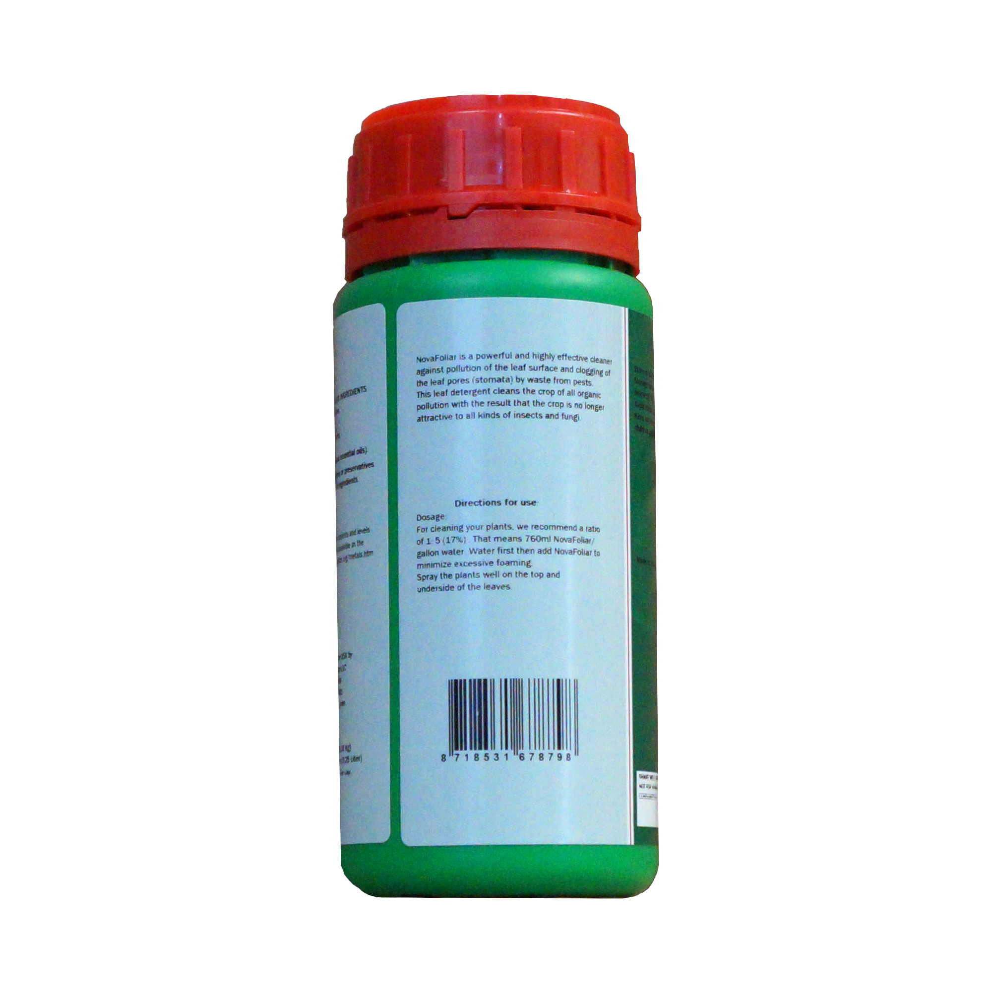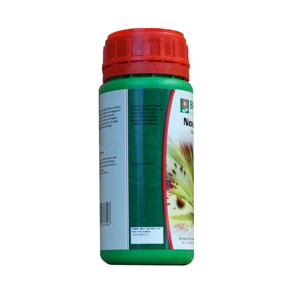 Natural leaf cleaner Bionova Novafoliar is a powerfull and effective cleaner against pollution of the leaf surface and clogged leaf pores (stomata) by waste from bugs and pests. This leaf cleaner cleans the crop of all organic pollution with the results that the crop is no longer attractive to all kinds of insects and fungi. Novafoliar is adviced to use in combination with Freeflow for full leaf coverage!