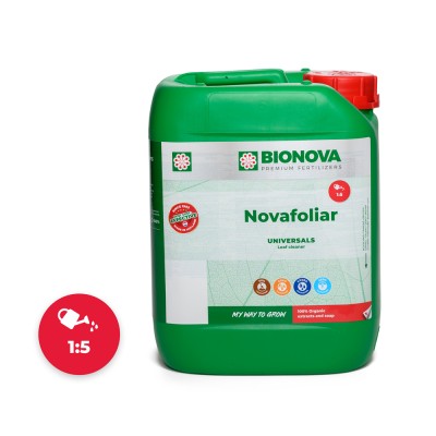 Natural leaf cleaner Bionova Novafoliar is a powerfull and effective cleaner against pollution of the leaf surface and clogged leaf pores (stomata) by waste from bugs and pests. This leaf cleaner cleans the crop of all organic pollution with the results that the crop is no longer attractive to all kinds of insects and fungi. Novafoliar is adviced to use in combination with Freeflow for full leaf coverage!