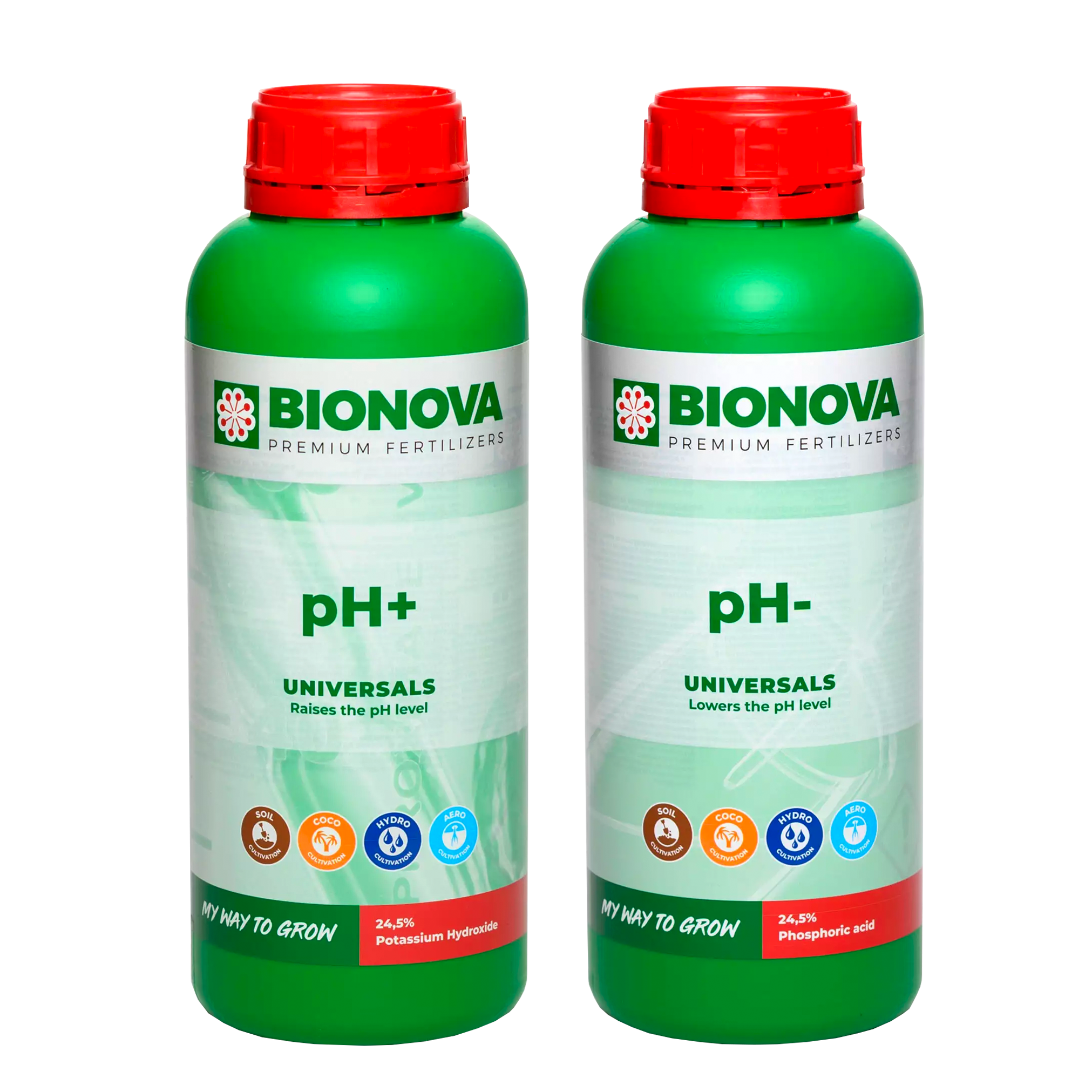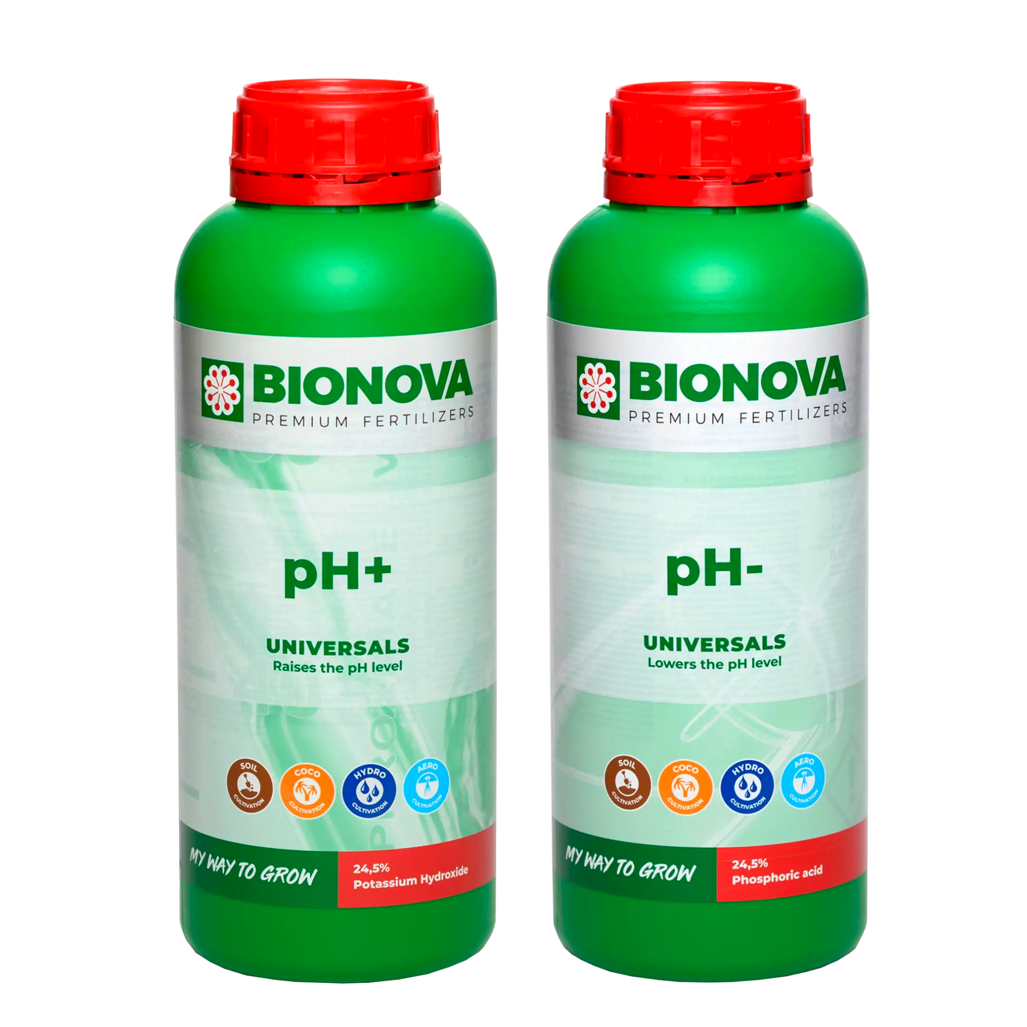 Bionova pH+ may be used from week 1 of veg until one week before harvest. Flushing is mandatory. pH+ is compatible with all Bionova products. This product can be used in irrigation.