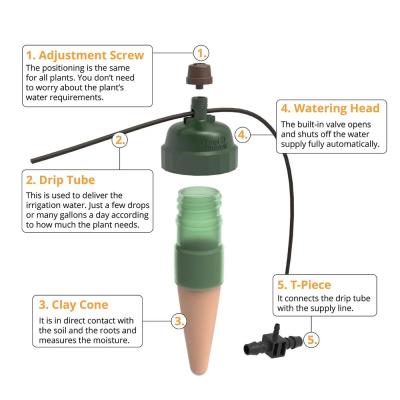 Introducing the Blumat Drippers – 5″ Sensor (6 Pack), an essential tool for efficient and sustainable plant care. This set includes six sensors designed to accurately monitor soil moisture levels at a depth of 5 inches (12.7 cm), ensuring plants receive water precisely when needed. Suitable for use in gardens, greenhouses, or indoor plant setups, these drippers integrate seamlessly into existing irrigation systems or standalone configurations.
