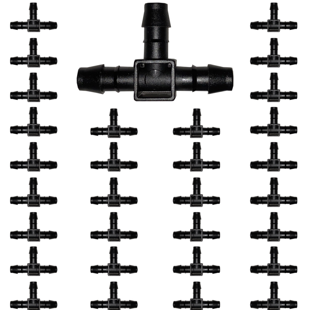 These let you split off branch feeder tubes and terminate them instead of making wide loops with your feeder tube. Outside for big plants you may not need to use these but for smaller areas and greenhouses, they really help. Use a tee at the end of a loop to install an air release valve. Use the end pieces to terminate an 8 mm supply line with a Blumat sensor. Contains 30 8mm tees.