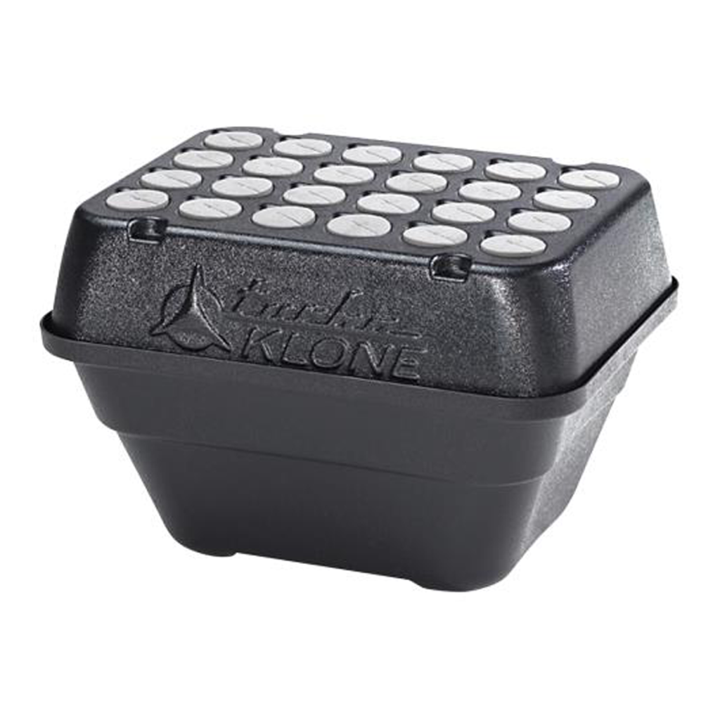 - The System has 24 Clone Sites that allow your plant cuttings to be suspended inside the TurboKlone where multiple spray jets send a continuous mist of nutrient-rich water solution to the clone roots, promoting the development of a healthy, robust root structure.