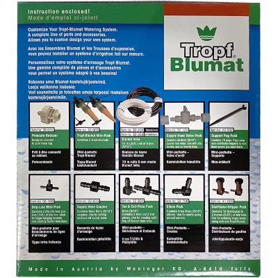 This Deck and Planter Kit is a great way to start your customized irrigation system. The flexible system can be expanded to include up to 500 drippers. We offer more Blumat accessories to expand your systems to specific needs.