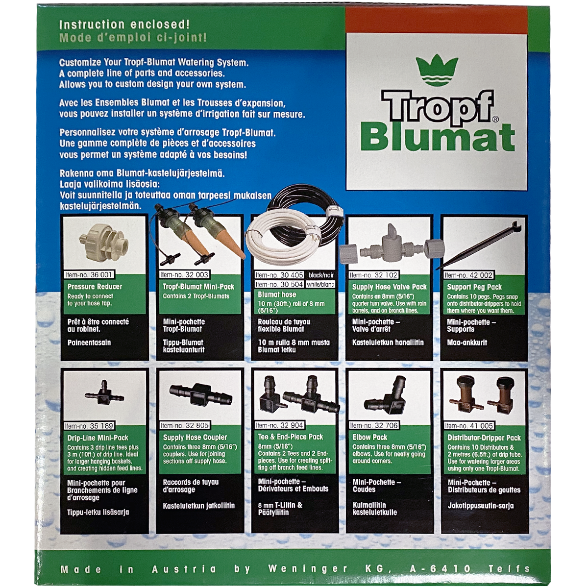 This Deck and Planter Kit is a great way to start your customized irrigation system. The flexible system can be expanded to include up to 500 drippers. We offer more Blumat accessories to expand your systems to specific needs.